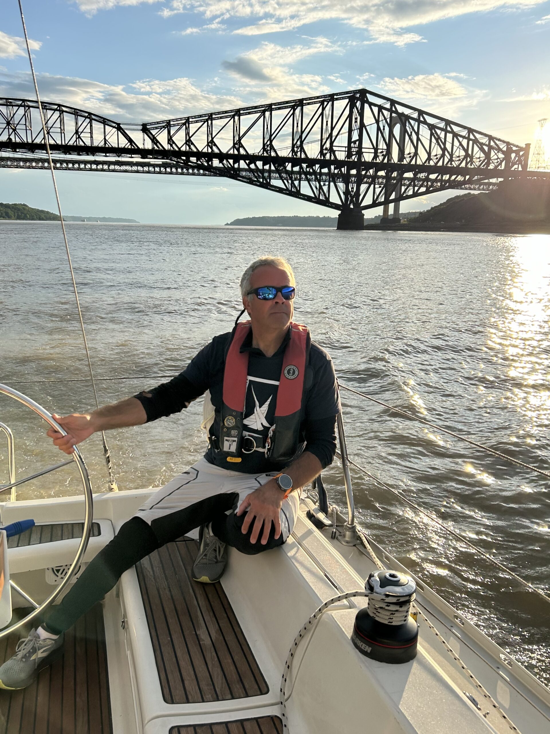 Le summum, son séjour sur un voilier Hunter 34 qui l’a accompagné pour obtenir son brevet de croisière élémentaire en 2022 avec Voile Mercator. Découvrir les secrets de la navigation sur le Fjord du Saguenay et sur le fleuve St-Laurent a été une belle introduction au monde de la voile. D’autres voiliers l’ont fait danser sur l’eau comme l’ArcticStern…