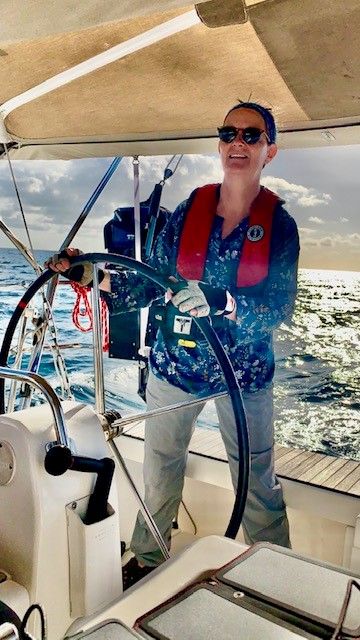 SkipperValérie est passionnée de la voile et se sent très bien sur un voilier.