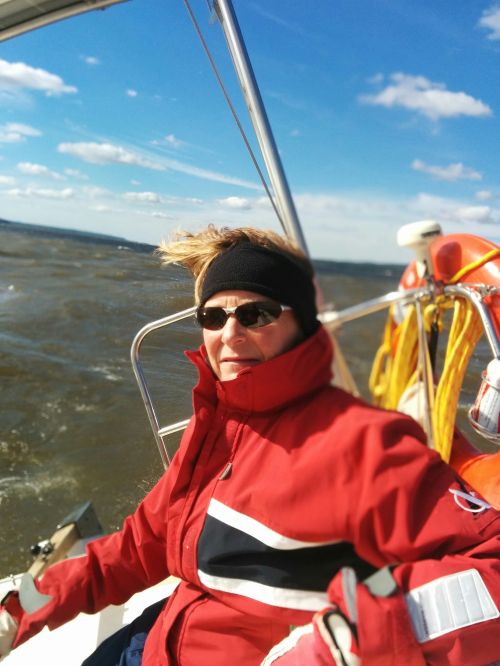 Elle pratique la voile depuis 44 ans, sur dériveur, catamaran et quillard. Elle a participé à plusieurs régates et navigue régulièrement avec des équipières qui seront à bord de Jake.